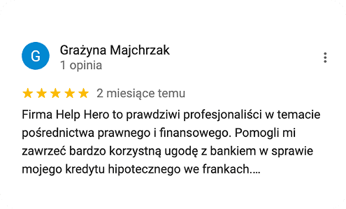 HelpHero to pierwszy w Europie Ekspert PoErednictwa Prawnego, ktC3ry niesie profesjonalnD pomoc w rozwiDzywaniu prawniczych problemC3w. ZespC3E ekspertC3w z wieloletnim doEwiadczenie pomaga nie tylko w uzyskiwaniu zwrotu prowizji bankowej, ale teE< w odfrankowieniu kredytC3w CHF, oddEuE